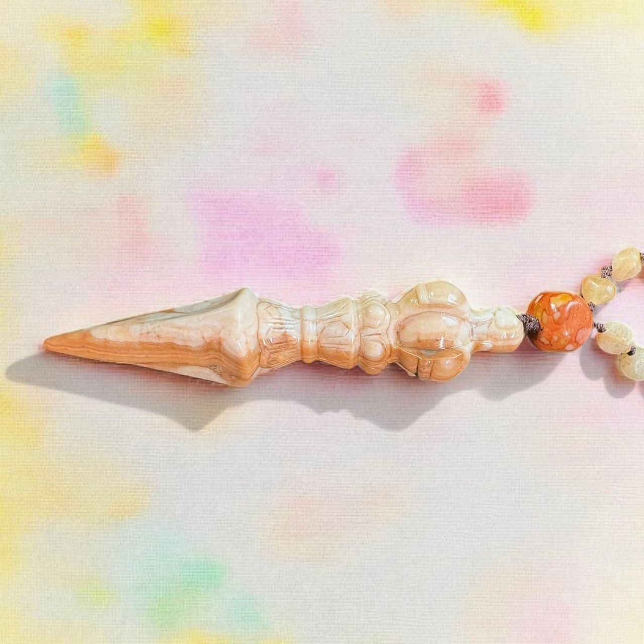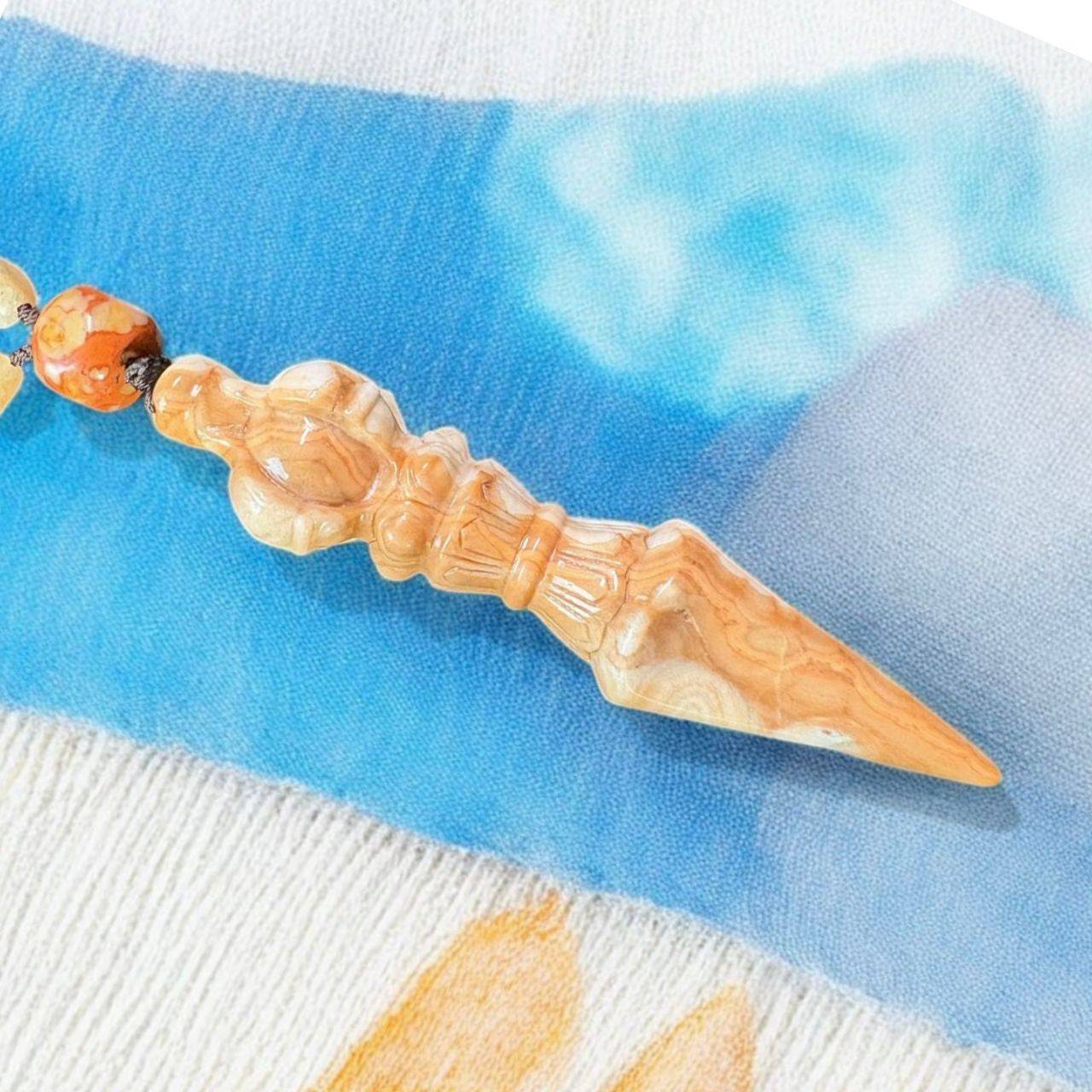 龍宮舍利的金剛降魔杵,是藏傳佛教中的一種法器,這種杵代表:可消除自身所有的罪障,始得身心靈清淨,皆得成就,凡是違緣障礙皆消除無餘,一切男女怨敵債主跟小人都消除,令人滿足歡喜。造形極具力量感,象徵著一種堅強的支撐及突破的力量,也可以引申為堅定意志、突破障礙。金剛杵具有對內和對外兩種意義,對內而言,可堅定地摧毀自己的貪、嗔、癡、慢、疑等五毒;對外來說,則以堅定的決心慈悲愛護眾生。此外,金剛杵上時常會象徵著堅定的心與慈悲心的結合,代表修行者永恆不變的堅定,意味著宇宙中強大的生命,它可以保護我們成就願望。因此金剛杵也被許多修行者視為可協助達成願望、消滅障礙的重要法器之一。