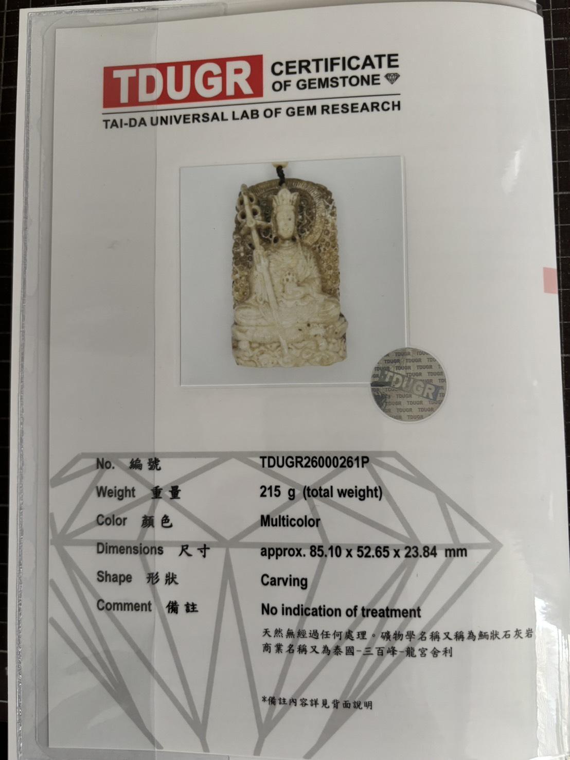 **附台大國際寶石鑑定所證書
