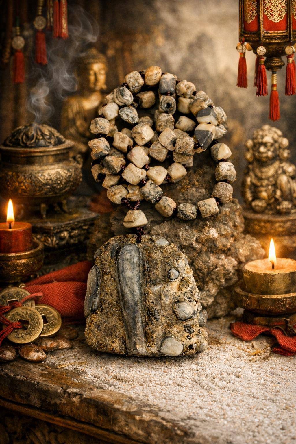 「瓷化金剛靈骨舍利」是產自泰國龍宮洞的稀有能量礦石,產量稀少,因經年累月演化,具備「高密度、高硬度」與類似陶瓷般光澤的瓷化現象。此類舍利常伴生金剛舍利(具金剛體質,強防護)與靈骨舍利(內斂靈氣),色澤多為黑、白或黃色,具備開運、招財與穩定能量的功能,屬龍宮舍利中的高級品種,值得收藏之珍品。